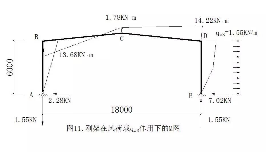(1)在迎风面横梁上风荷载竖向分力qw2y作用下